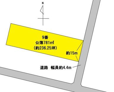 | 土地面積 | 公簿 781.00㎡ | 坪数 | 236.25坪 | 坪単価 | 2.00万円 |