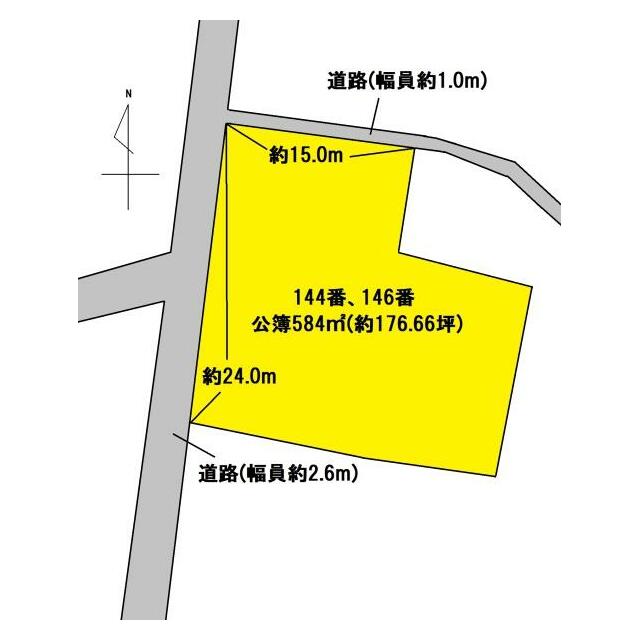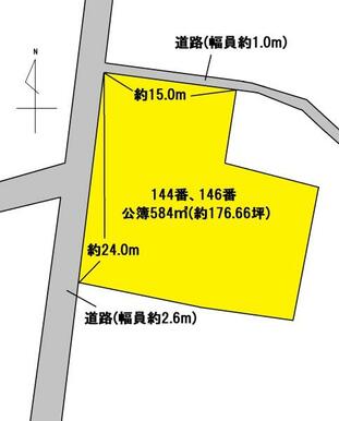 | 接道状況 | 西2.6m 公道 接面24.0m 北1.0m 接面15.0m | 地目 | 田 |